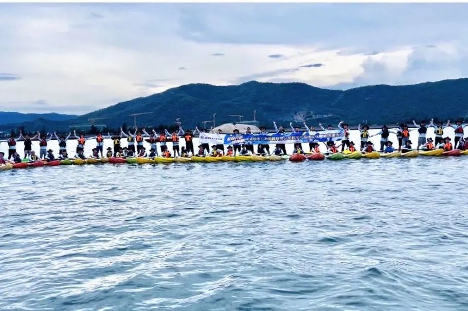 由專業(yè)的皮劃艇教練為大家做皮劃艇專業(yè)動作要領(lǐng)和安全注意事項的培訓(xùn),大家認(rèn)真聆聽并迅速掌握要領(lǐng)。培訓(xùn)結(jié)束后,大家躍躍欲試,穿上救生衣,踏上皮劃艇,撐起長船槳,自由練習(xí),一陣陣歡聲笑語和整齊的“左、右、左、右...”打破了海面的平靜。
