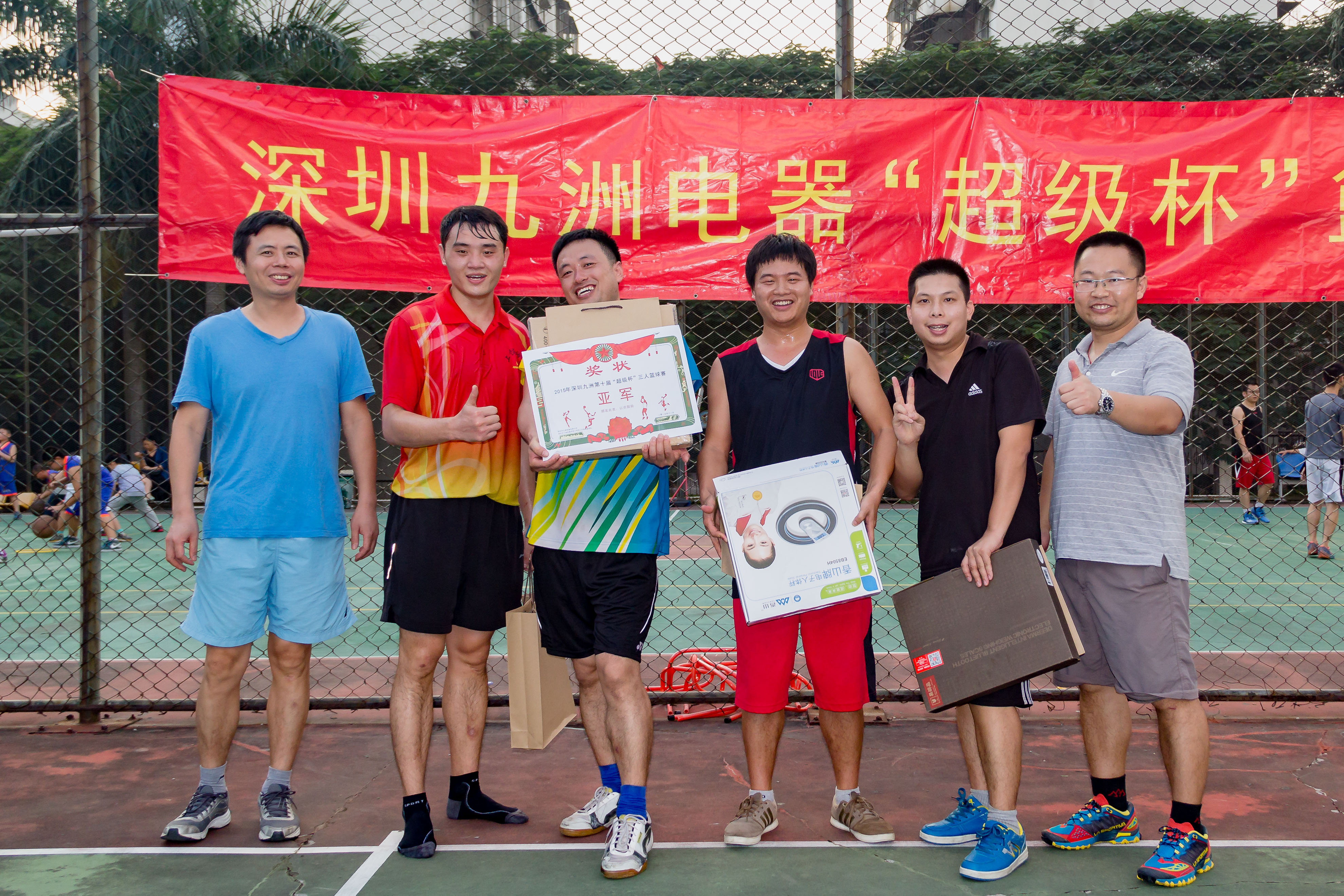 2015年11月14日,下午13時,深圳九洲第八屆“超級杯”籃球賽隨著一聲哨響正式拉開戰(zhàn)幕。 報名參加比賽有12支隊伍,分為4個小組進(jìn)行比賽淘汰制,運(yùn)動員們在場下是親密無間的同事,在球場上卻是你爭我趕,不放過任何一個得分的機(jī)會。歡呼聲、喝彩聲此起彼伏,經(jīng)過3小時的艱苦鏖戰(zhàn),籃筐終結(jié)者憑借良好的團(tuán)隊配合和戰(zhàn)術(shù)運(yùn)用,最終獲得冠軍;亞軍“技術(shù)支持部”、季軍“515又浪”、3分球冠軍程炳財,本屆籃球賽圓滿結(jié)束。